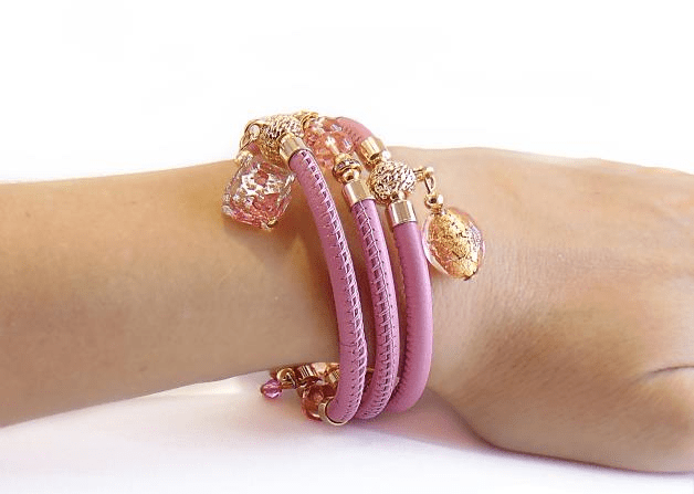 Muránói üveggyöngyökkel díszített karkötő, eredeti toszkán bőrszíjjal, Made in ItalyEgy autentikus ékszer, amely nemcsak csodálatos látványt nyújt, de viselése örömet is szerez Az ékszer a muránói kézművesség kiváló hagyományai szerint készült, amely a szépség és a minőség megteremtésével életben tartja Velence történelmét. Az ékszer egyedisége lehetővé teszi, hogy eredeti alkotások készüljenek a különleges stílust kereső hölgyek részére. A minőség mindig az első helyen áll, minden darab kézzel készül olyan technikákkal, amelyek Muránóban születtek és több mint ezer éve öröklődnek. Az ékszerek egyedi műalkotásokat alkotnak, örömet okoznak, felvidítják, érdekessé és értékessé teszik viselőjük stílusát.