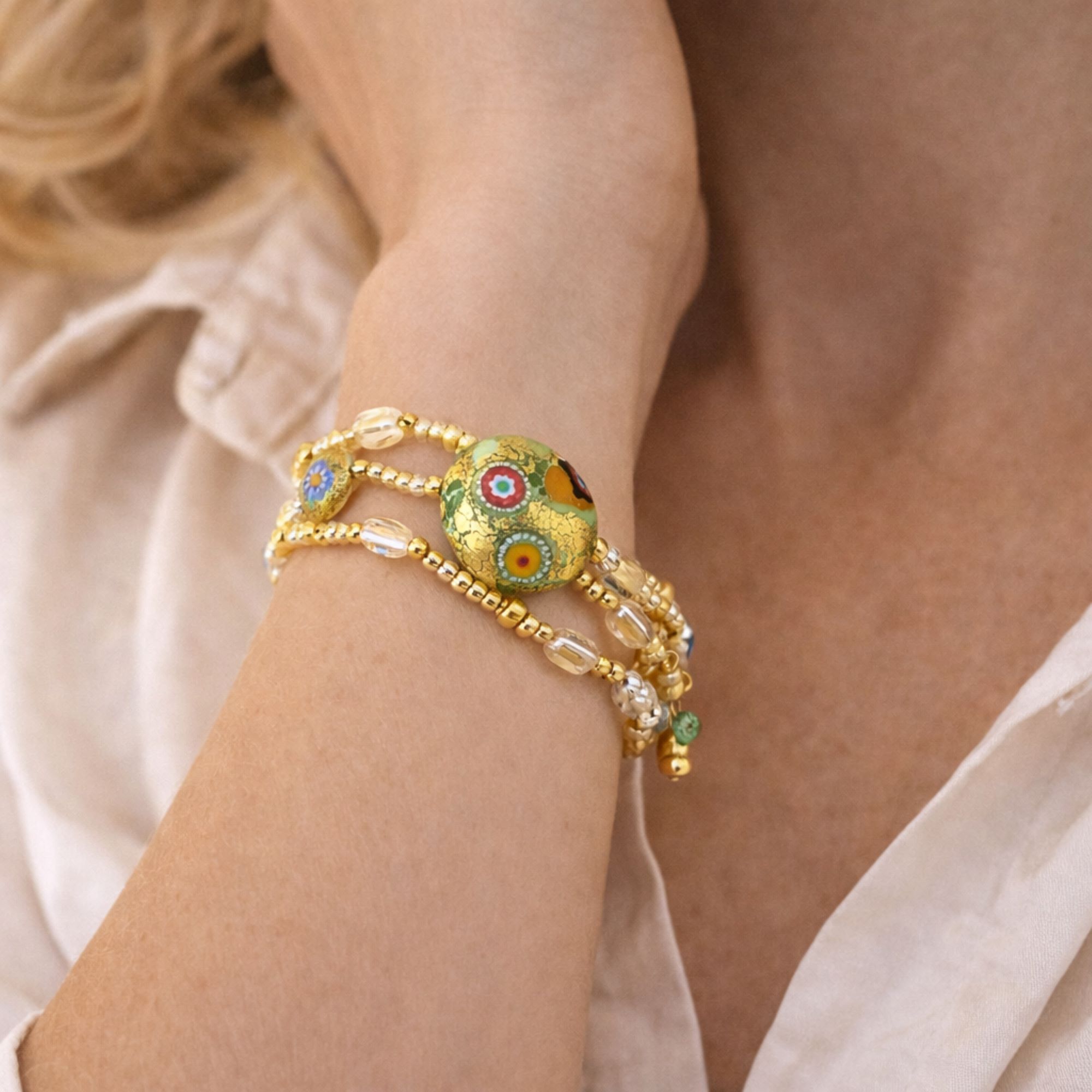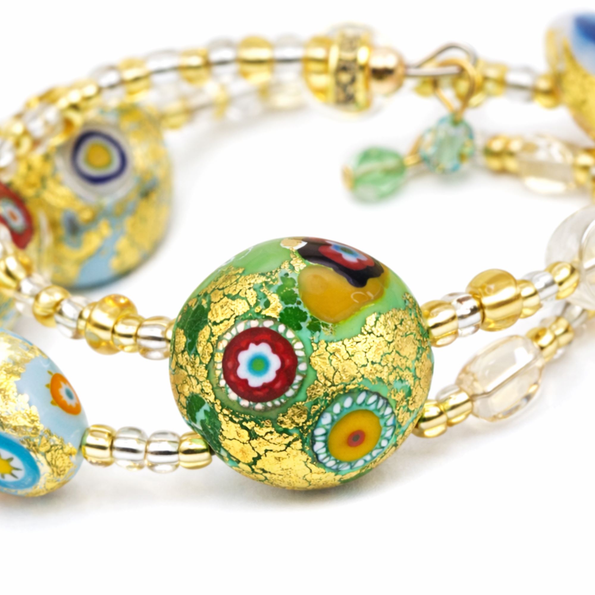 Muránói üveggyöngyökkel díszített karkötő, melyet Swarovski kristályok tesznek még ragyogóbbá. Made in Italy.
