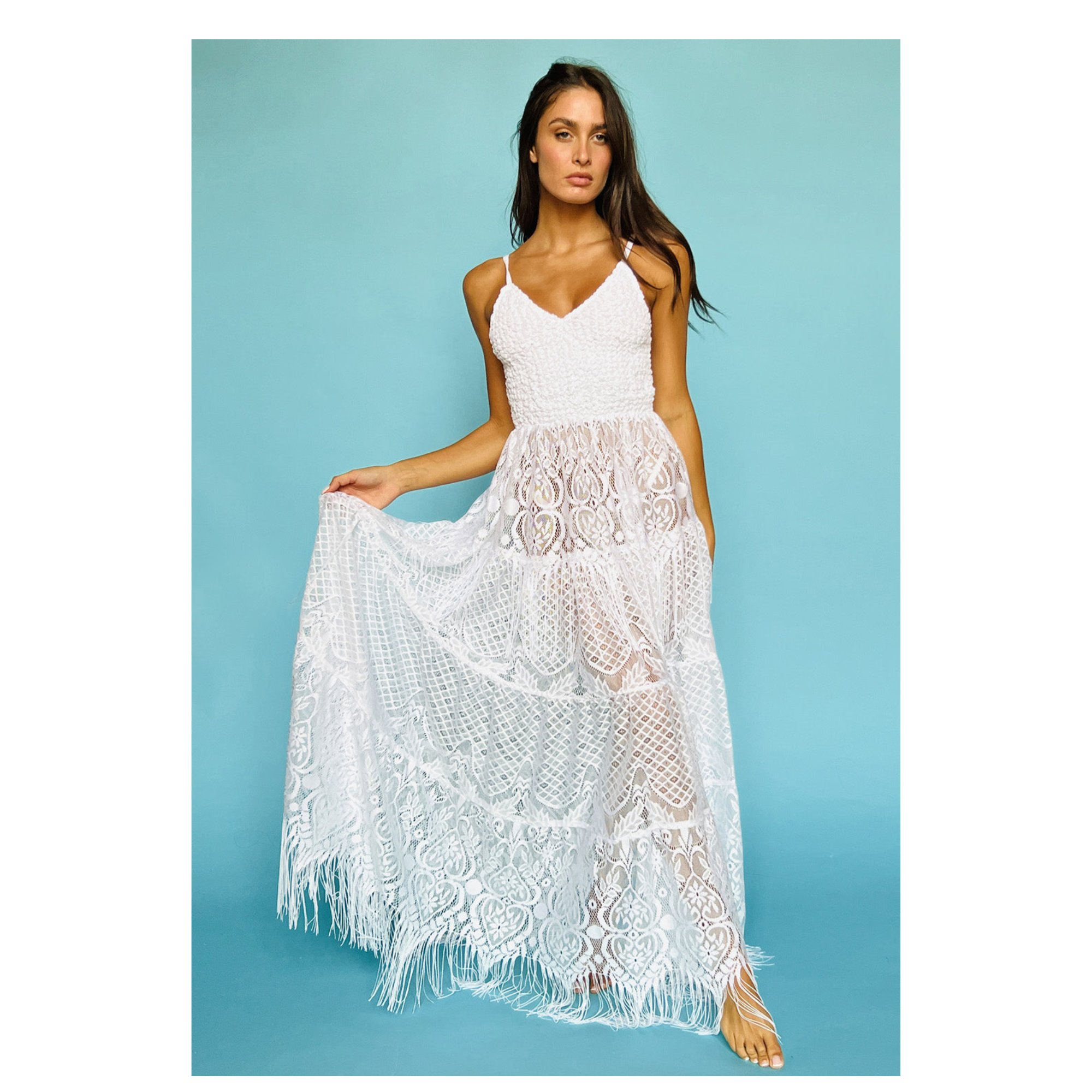 Az Antica Sartoria by Giacomo Cinque 2024-es kollekciójának egyik legkülönlegesebb darabja ez a hosszú, pántos ruha, amely a mediterrán eleganciát és a bohém nőiességet ötvözi. A Positano ihlette design romantikus és kifinomult megjelenést biztosít, tökéletes választás nyári estékre, tengerparti vacsorákra vagy különleges alkalmakra.