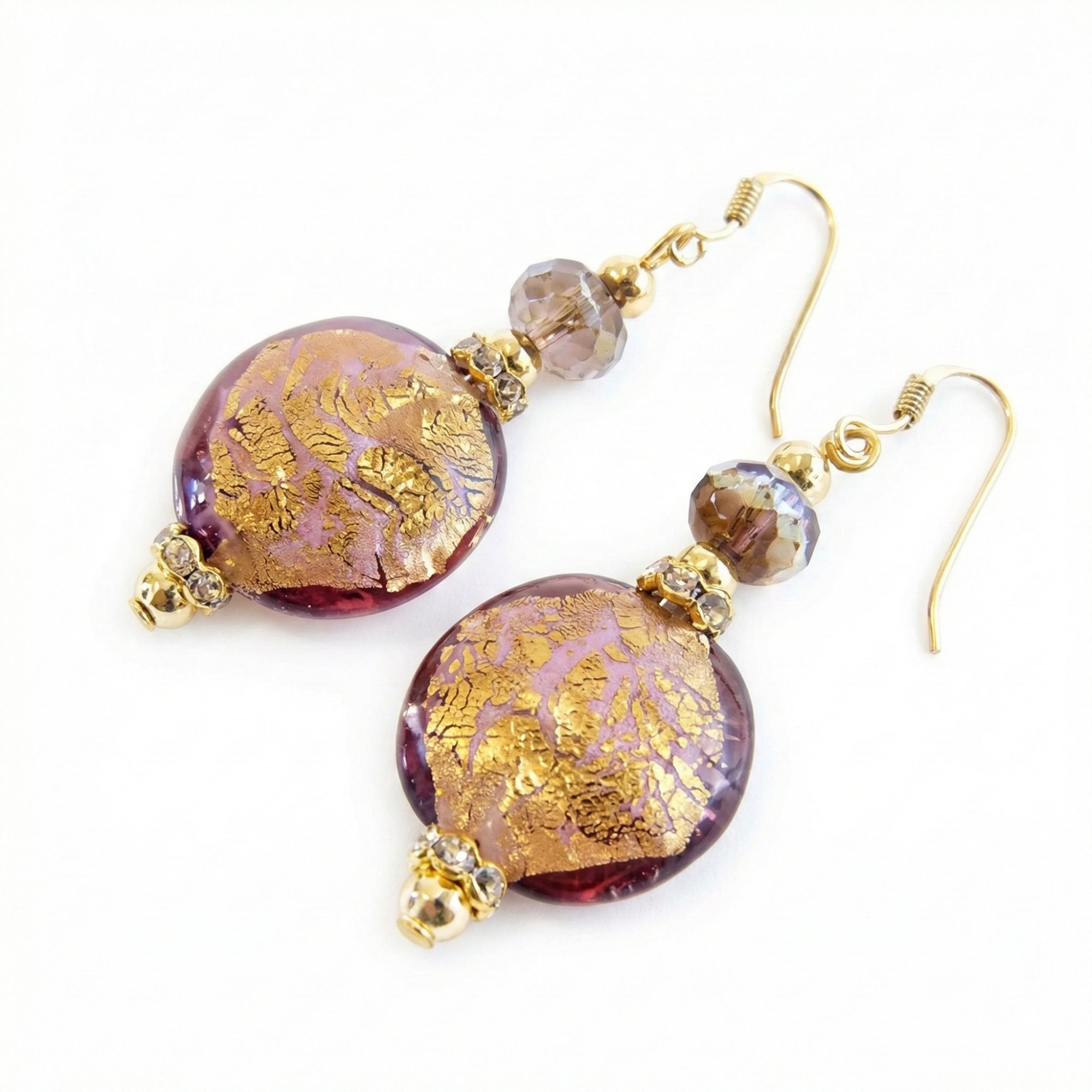 Fülbevalók eredeti muránói üveggyöngyökkel és hipoallergén anyagból, Swarovski kristályokkal. Made in Italy.
