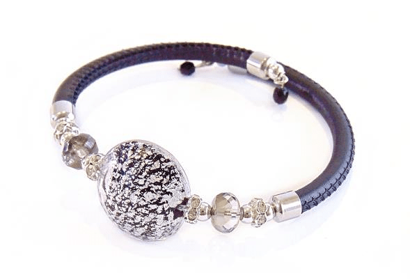 Murano üveg gyöngyökkel díszített karkötő, eredeti és igazi toszkán bőrrel, Made in Italy. Egy autentikus ékszer, amely nemcsak gyönyörködtet, hanem öröm viselni is. Az ékszer a muránói kézművesség kiváló hagyományai szerint készült, amely a szépség és a minőség megteremtésével életben tartja Velence történelmét. Az ékszer egyedisége lehetővé teszi, hogy eredeti alkotások készüljenek a különleges stílust kereső hölgyek számára. A minőség mindig az első helyen áll, mivel minden darab kézzel készül, olyan technikákkal, amelyek Muránóban születtek és több mint ezer éve öröklődnek. Az így készült ékszerek örömet okoznak, felvidítanak és különleges értéket adnak viselőjük számára.