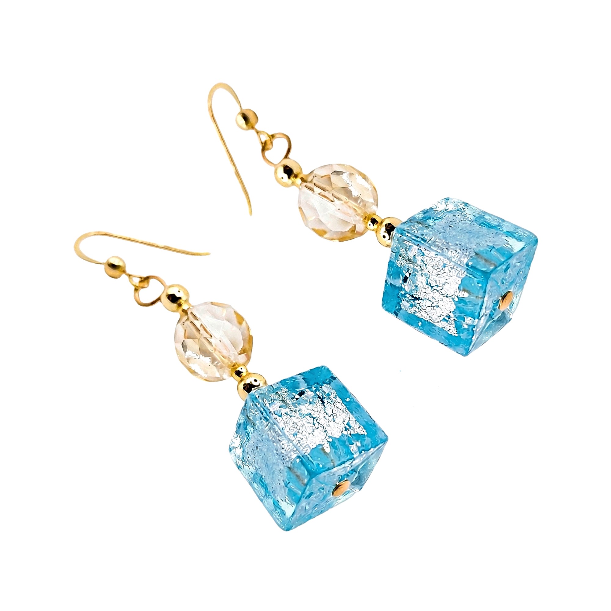 Fülbevalók eredeti muránói üveggyöngyökkel és hipoallergén anyagból, Swarovski kristályokkal. Made in Italy