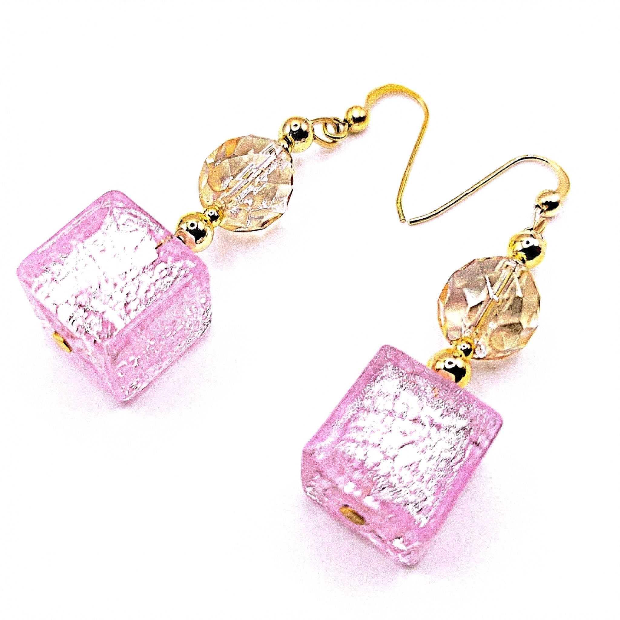 Fülbevalók eredeti muránói üveggyöngyökkel és hipoallergén anyagból, Swarovski kristályokkal. Made in Italy